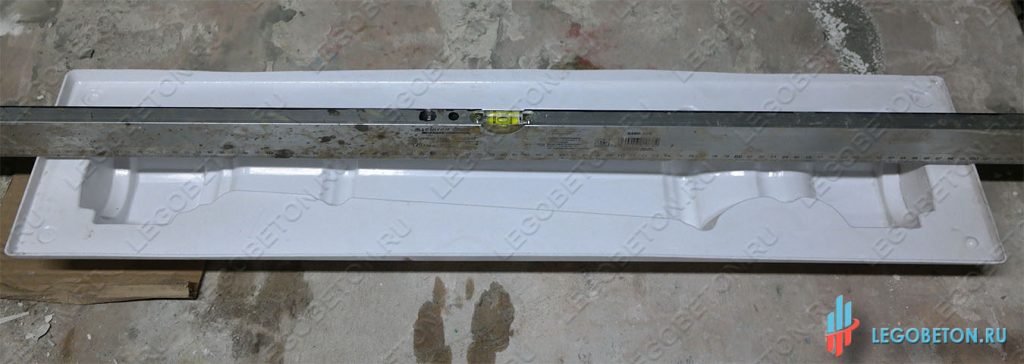 Помещаем форму в оснастке на вибростол и выравниваем по уровню. Важно выровнять форму по 2-м плоскостям.