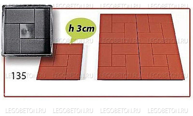 Стандартная глубина формы позволяет сформировать готовое изделие толщиной :3 см. Также возможно формирование более тонкого изделия при использовании меньшего объема цементной смеси загружаемой в форму.При выборе кол-ва форм – нужно учитывать, что необходимое кол-во формы “Квадрат «Калифорния» (Ластрико)” для изготовления 1 м2 тротуарной плитки = 11 шт.