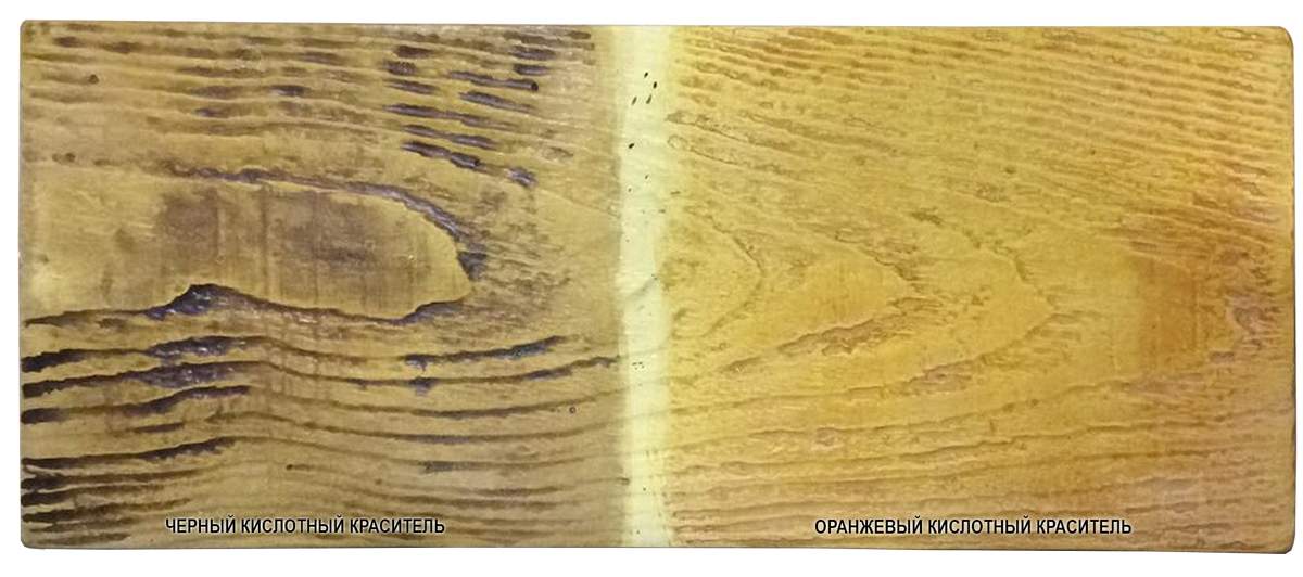 Пример окраски плитки черным и оранжевым кислотным красителем “под дерево”