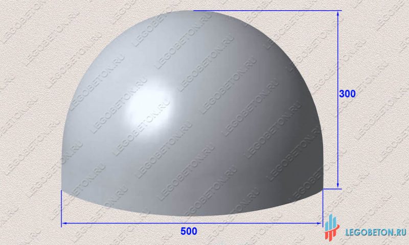 (*) Размер полусферы 500 х 250 мм получается при неполном заполнении формы. Для точного совпадения размеров используется одинаковый вес бетонной смеси при заполнении формы для полусферы.